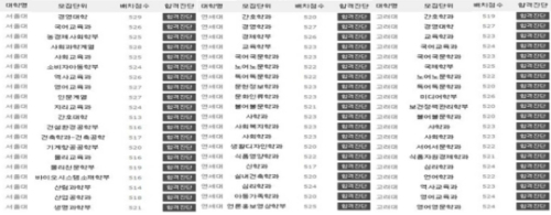 진학사 배치표, SKY 외 주요 대학 표준점수 '517점 이상' 이과는 '527점 이상'