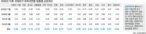 우리투자증권 이현주 연구원은 “2005년 이후 국제유가(서부텍사스유 기준) 하락국면이 모두 다섯 번 있었는데 에너지와 소재 부문의 민감도가 높았고, 통신, 필수소비재, 헬스케어 부문의 민감도는 거의 없거나 역의 상관관계를 나타냈다”고 분석했다.
