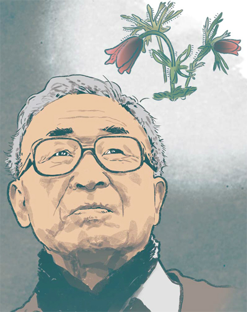 여든한 살의 ‘묵은 목젖’으로 엄마를 부르는 고은(삽화). 그는 이 시 ‘성묘’에서 “내가 부르던 젖먹이 적, 젖 떼던 적의 어디에 엄마, 엄마는 묻혔을까” 자문한다.