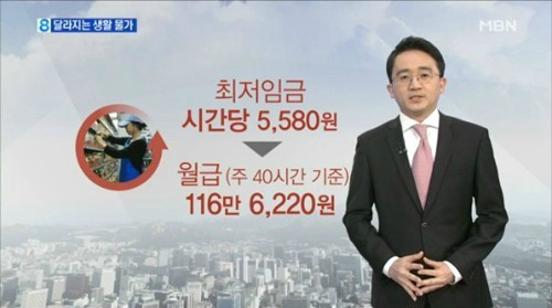 2015년 최저임금 시간당 5580만원...주 40시간 월급은 116만원 대