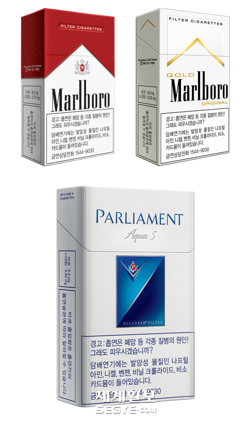 19일부터 전국 소매점에서 4500원에 구입할 수 있는 말보로(상)·팔리아멘트(하). 한국필립모리스 제공 |