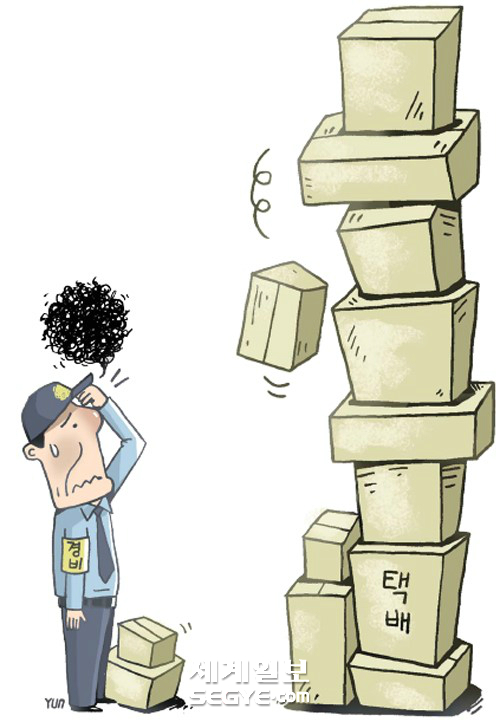 ‘민족의 명절’이라는 설이 다가오면서 아파트 경비원들은 ‘택배 스트레스’에 시달리고 있다. 명절 때마다 몰려드는 택배물건으로 인해 경비원들이 몸살을 앓기 때문. 낮 시간에 택배물건을 보관했다가 저녁때가 되면 일일이 돌아다니면서 배달해주거나 전화(인터폰)를 해야 한다. 택배물건으로 경비실이 비좁아져도 이 상자를 밖으로 내놓을 수 없다. 한파에 경비실 앞에 쌓아둔 과일이 얼어버려 입주민에게 항의를 받은 경험이 몇 번 있어서다.