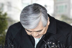 '땅콩 회항' 사건 2차 공판이 열린 30일 오후 서울 마포구 서울서부지법에서 조양호 한진그룹 회장이 증인 자격으로 법정에 출두, 건물로 들어서기 전 고개 숙여 인사하고 있다.