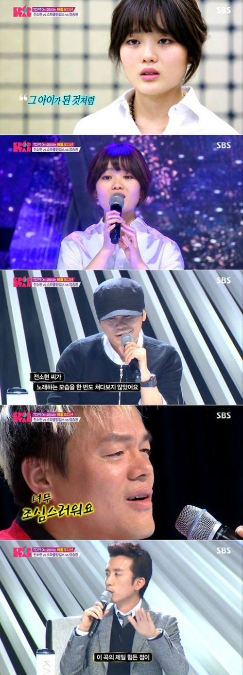 8일 오후 방송된 SBS 서바이벌 오디션 '일요일이 좋다-K팝스타 시즌4(이하 K팝스타4)'에는 '배틀 오디션' 2조 전소현, 스파클링걸스, 정승환의 경쟁 무대가 전파를 탔다.