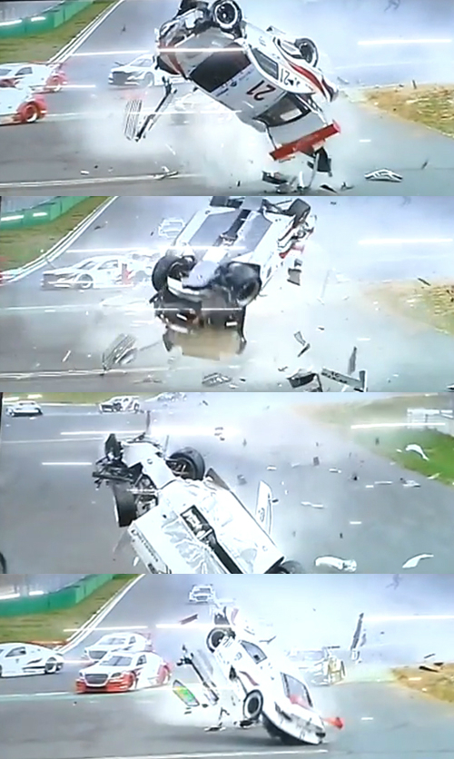 가수 겸 래퍼 김진표(38·엑스타레이싱)가 CJ 슈퍼레이스 개막전에서 차량이 반파되는 사고를 당했다.
