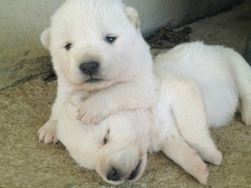 사진 속 강아지는 새근새근 잘 자고 있는 것처럼 보이지만 위에서 다른 강아지가 머리는 누르고 있는 모습이다.