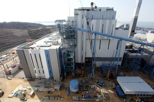 | 현대건설이 원전 발전용량과 맞먹는 고성능으로 건설하고 있는 당진화력발전소 9, 10호기 전경. 현대건설 제공 |