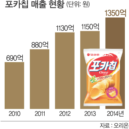 국립종자원에 등록된 ‘두백’은 튀겨도 고유의 감자 색을 잃지 않고, 맛과 식감도 뛰어나 감자칩 원료로 제격이다. 오리온은 감자의 파종에서 수확까지 100여일 동안 철저한 관리 속에 감자를 재배한다. 수확 이후에도 크기, 모양, 색상 등 23가지 시험을 거쳐야 포카칩 원료로 낙점된다. 선별된 감자는 0.123∼0.134㎝ 두께로 2분 40초 안에 빠르게 튀겨낸다. 이 과정을 통해 바삭한 식감의 포카칩이 탄생한다. 오리온은 작년 7월 출시한 포카칩 ‘스윗치즈’로 감자칩 1위 입지를 더욱 공고히 하고 있다. 스윗치즈는 오리지널, 어니언에 이은 세번째 맛으로 감자와 궁합이 잘 맞는 재료가 치즈라는 점에 착안해 2년여 연구 끝에 개발됐다.