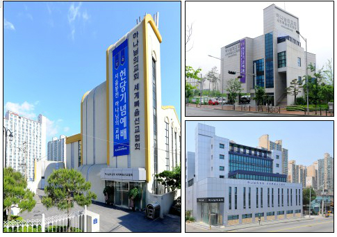 | 하나님의 교회 서울봉천교회, 상계교회, 월계교회 전경(왼쪽부터 시계방향으로). |