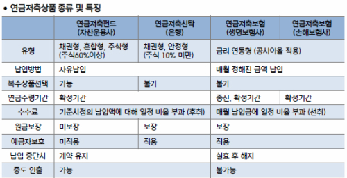 수익률에 초점을 맞춘다면 연금저축펀드가 알맞다. 저축연금펀드도 일반펀드처럼 주식형·혼합형·채권형으로 구분되는데, 하나의 연금저축펀드 계좌를 튼 후 여러 펀드를 가입하는 것도 가능하다. 매년 적립금의 1% 수준는 수수료로 걷는다. 이지은 키움증권 금융상품영업팀 주임은 "연금저축펀드는 세액공제받은 연 400만원과 이익금을 제외한 금액은 언제든지 인출할 수 있다는 게 장점"이라고 말했다.