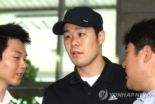 | KT 구단 조성민 선수가 15일 오전 프로농구 전창진 감독의 스포츠 도박과 승부조작 의혹과 관련, 참고인 소환 조사를 받기 위해 서울 중부경찰서에 들어서고 있다. |