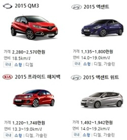 | 국내 브랜드 소형차 부문에서 디젤모델은 4종으로 나타났다.(자료=네이버 자동차) |