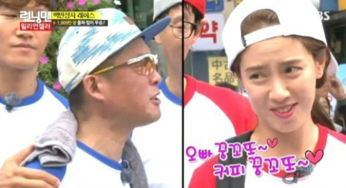 하지만 그냥 사줄리 없는 파랑팀은 송지효에 애교를 요구했다