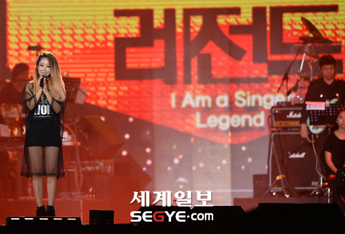 가수 양파가 7일 오후 서울 마포구 상암동 상암문화광장에서 진행된 MBC '나는 가수다 레전드' 현장공개에 참석해 공연을 선보이고 있다.