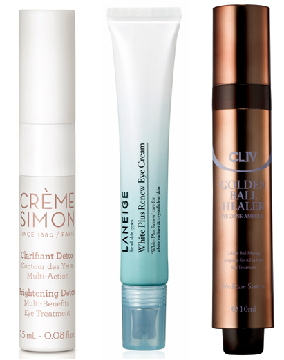 사진=끄렘 시몽 ‘브라이트닝 멀티-베네핏 아이 트리트먼트’ / 라네즈 ‘화이트 플러스 리뉴 아이크림’ / 씨엘포 ‘골든 볼 힐러’