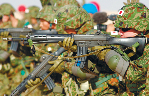 | 사격 훈련하는 자위대 일본 육상자위대원들이 제2차 세계대전 이후 처음으로 전투지역에 파병됐던 2004년 당시 이라크로 배속되기 전 쿠웨이트 사막에서 실탄사격 훈련을 하고 있다. 세계일보 자료사진 |