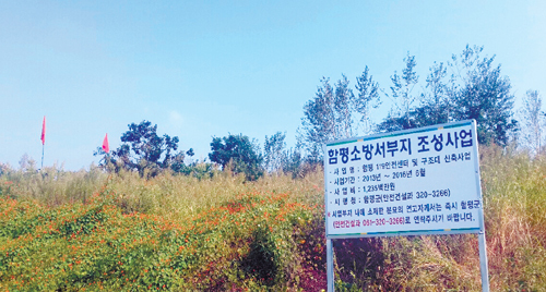 전남 함평군이 무연고 분묘를 개장하고 있는 대동면의 신축 소방서 부지. |
