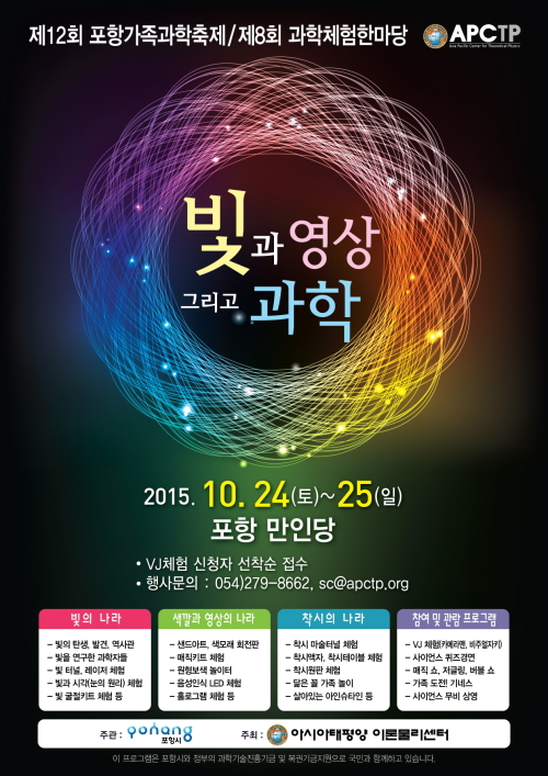 행사를 주관하는 아태이론물리센터의 이범훈 소장은 “어린이들이 부모님과 함께 포항가족과학축제의 다양한 체험 프로그램을 즐기며 과학기술을 쉽게 이해하고 그 중요성을 스스로 느껴 미래 과학기술 발전의 주역으로 성장하길 바란다”고 밝혔다.