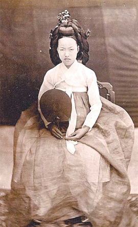 | 1893년 프랑스 한 잡지에 명성황후의 모습이라며 실린 사진. 명성황후를 만난 외국인들은 “날카로운 눈, 아름다운 여성” 등으로 그녀를 묘사했지만,‘명성황후 사진’으로 확정된 것은 아직 없다. 세계일보 자료사진 |