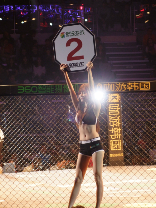 8일 한 인터넷 커뮤니티에는 로드걸 최슬기가 로드FC 대회에서 라운딩을 하고 있는 사진들이 공개됐다. 사진 속 최슬기는 인형같은 외모와 군살 없는 몸매로 여유있게 라운딩을 하고 있다.