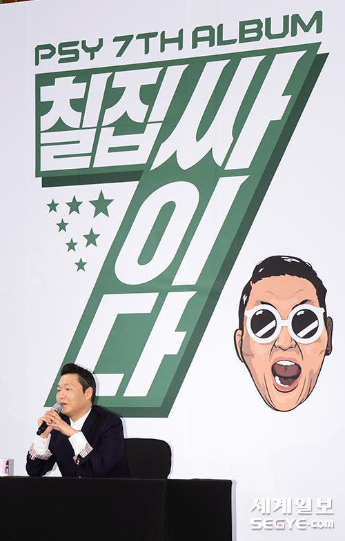 가수 싸이가 30일 오후 서울 영등포구 여의도동 콘레드 호텔 그랜드볼륨에서 정규 7집 발매 기자회견에 참석해 질문에 답하고 있다.