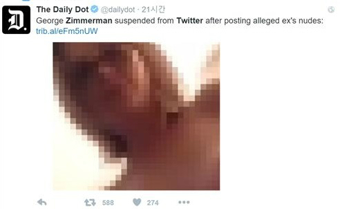 트위터는 전 여자친구의 반나체 사진을 올려 물의를 빚은 지머먼의 계정을 3일(현지시간) 삭제했다.
