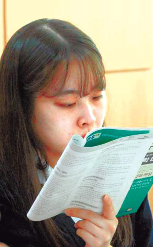 | 2016학년도 대학수학능력시험이 치러진 지난달 12일 서울의 한 고사장에서 한 수험생이 막바지 정리를 하고 있다. 세계일보 자료사진 |