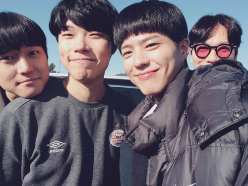 사진 속에는 박보검이 고경표, 류준열, 이동휘와 해맑게 웃고 있는 모습이 담겨 있다.