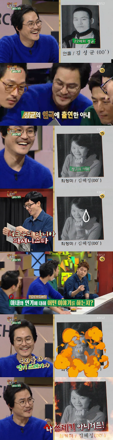 이날 김성균은 “연극영화과 다닐 때 아내를 만났다“고 밝혔다. 이때 방송에는 김성균 아내 김혜정 씨 사진이 공개돼 이목을 사로잡았다.