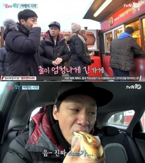 | 꽃보다 청춘 조정석, '핫도그 세 개'가 '핫도그 월드'로 번역된 사연은? 사진=tvN '꽃보다 청춘' 방송 캡처 |