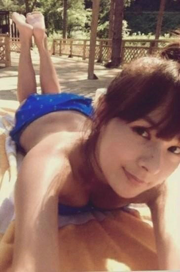 공개된 사진에서 채연은 파란색 비키니를 입고 있다.