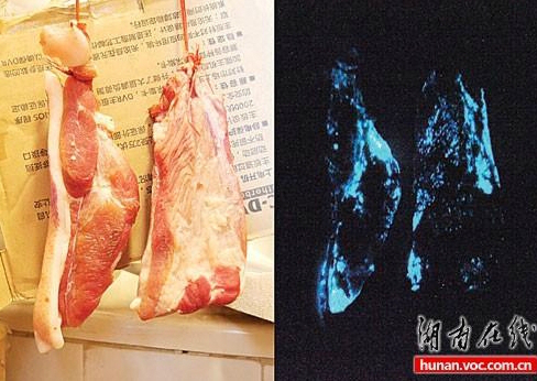 中 '야광 돼지고기' 또 발견, 먹거리 불안 급증