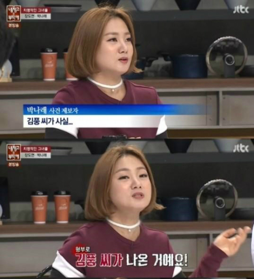 개그우먼 박나래가 김풍과 ‘연예인 여자친구’ 에 대해 폭로해 눈길을 모았다.