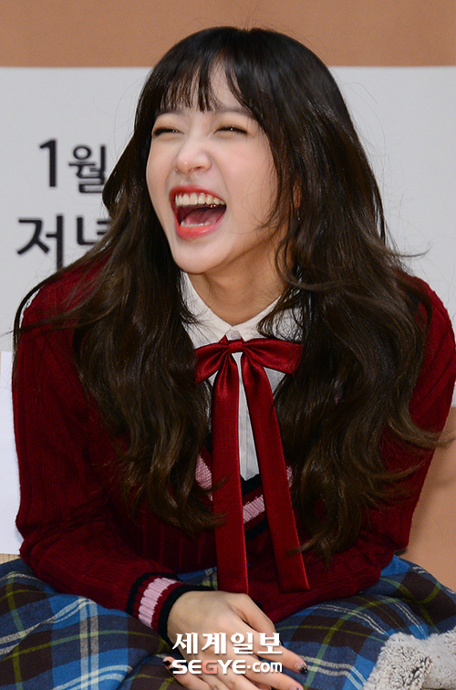EXID 하니가 28일 오후 서울 목동 SBS에서 열린 SBS 예능프로그램 '토요일이 좋다-백종원의 3대 천왕' 기자간담회에 참석해 해맑게 웃고 있다.