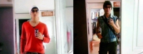 기성용은 사진 속에서 몸에 달라붙는 빨간색 브이넥 셔츠와 하얀색 비니를 쓰고 포즈를 취하고 있다. 오른쪽 사진에서도 데님 조끼와 비니,선글라스를 매치 후 자신의 모습을 비추고 있다.