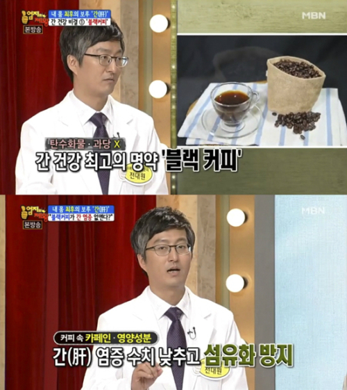 MBN '엄지의 제왕' 2014년 11월 방송분에서는 간 건강의 비결로 블랙 커피가 뽑혔다.
