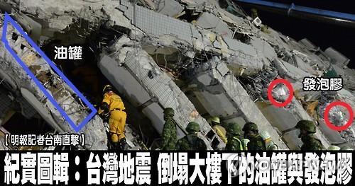 지난 6일 새벽 3시57분 가오슝(高雄)시 메이눙(美濃)구를 진앙으로 한 리히터 규모 6.4의 지진으로 타이난시에서만 모두 9개 건물이 붕괴되고 5개 건물이 기울어지는 등 큰 피해가 발생했다.