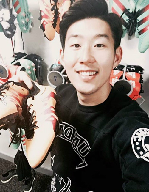 게시된 사진 속에는 주황색 축구화를 든 채 셀카를 찍고 있는 손흥민의 모습이 담겨 있다.