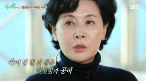 이어 박정수는 "갑상선암 수술 후 폐경이 됐다. 엔진을 다 들어내고 껍데기만 있다고 하더라"고 당시를 떠올리며 "4~5년 그 시간들을 견디니까 (밝아졌다). 사람이 좋은 때만 살 수는 없지 않느냐"고 긍정적인 모습을 보였다.