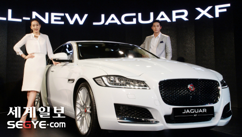 23일 오전 서울 장충단로 반얀트리 클럽 스파 앤 서울에서 열린 재규어 랜드로버 코리아의 프리미엄 비즈니스 세단 ''올 뉴 재규어 XF'' 신차 발표회에서 모델들이 신차를 소개하고 있다. 이제원기자 jwlee@segye.com Copyright ⓒ 세계일보. 무단 전재 및 재배포 금지