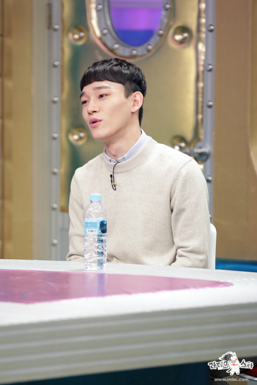 또한 이날 첸은 슈퍼주니어 려욱을 따르는 ‘려라인’임을 인정하며 관심을 집중시켰다. 그는 지난 1월 려욱이 ‘라디오스타’에 출연했을 당시를 언급했고, 규현이 자신을 따르는 ‘규라인’이 아니었던 것에 토라져있다고 밝혔으나 결국 첸은 ‘려라인’인 것으로 정리돼 촬영장은 웃음바다가 됐다.