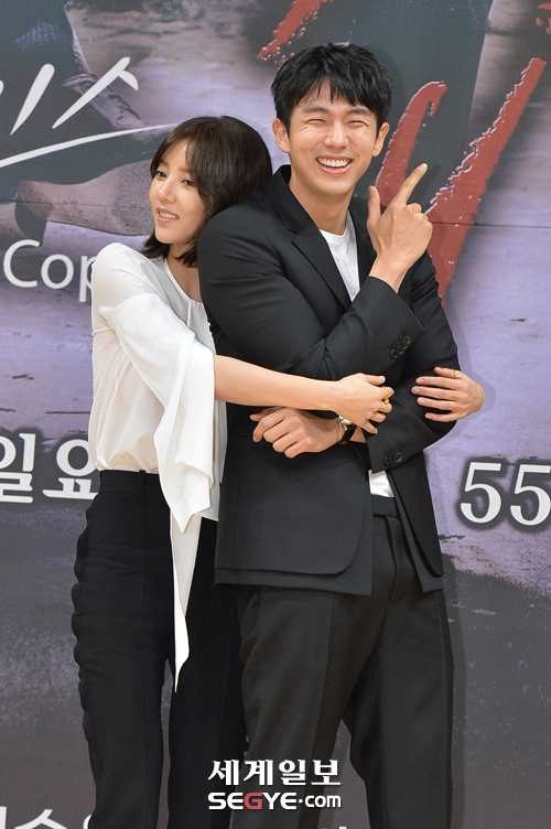 배우 손담비, 임슬옹이 4일 오후 서울 양천구 목동 SBS사옥에서 진행된 주말드라마 '미세스 캅2' 제작발표회에 참석해 포즈를 취하고 있다.