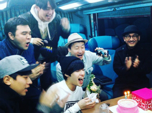 공개된 사진 속에는 당시 영화 '동주' 60만 관객 돌파 축하를 위해 강하늘과 박정민, 이준익 감독 등이 케이크 위에 촛불을 켜고 파티 중인 모습이 담겨있다.