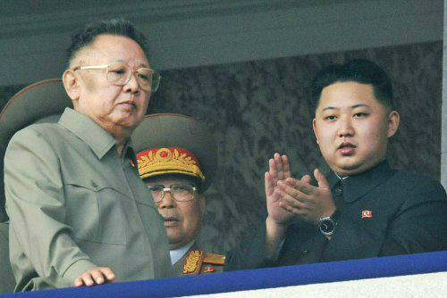 | 1980년 10월 개최된 제6차 노동당대회 모습. 김일성 주석(앞줄 왼쪽)과 김정일 국방위원장(당시 정치국 상무위원이자 노동당 비서)이 이야기를 나누고 있다. 세계일보 자료사진 |
