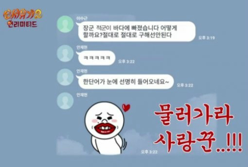 메신저에서 이수근은 “장군, 적군이 바다에 빠졌습니다. 어떻게 할까요? 절대로 절대로 구해선 안된다”라며 구혜선을 연상케 하는 재치 넘치는 발언을 했다.
