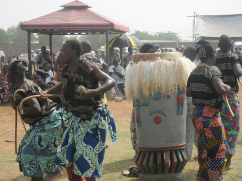 아프리카 서부 기니만 연안국 베냉의 제2 도시 코토누에서 전통 춤 경연 대회가 열렸다. 사진은 대형 호리병박으로 만든 북 ‘사토’를 둘러싸고 춤을 추고 있는 모습으로, 주로 장례식 때 부모를 잃은 이들이 이 사토 춤을 춘다.