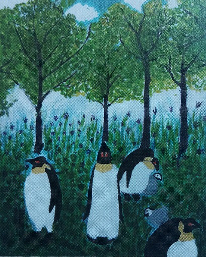 | 권영국씨가 서울 서부지법이 진행 중인 ‘참전용사 노년의 삶, 예술로의 승화’ 전시회에 출품한 ‘펭귄의 가족’. |