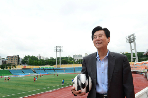| 한국 OB축구회장보다도 감독이라는 호칭이 더 좋다는 김정남씨가 최근 한국 축구의 메카인 효창구장에서 자신의 어린 시절을 회상한 뒤 포즈를 취하고 있다. 남정탁 기자 |