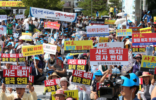 사드(THAAD·고고도미사일방어체계) 배치 후보 지역으로 거론되는 경북 칠곡군에서 대규모 반대 집회가 열렸다.