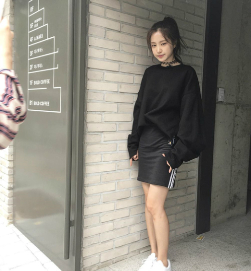 손나은은 최근 자신의 인스타그램에 "오늘도 블랙. 눈 감기 직전인가봐"란 글과 함께 한 장의 사진을 게재했다.
